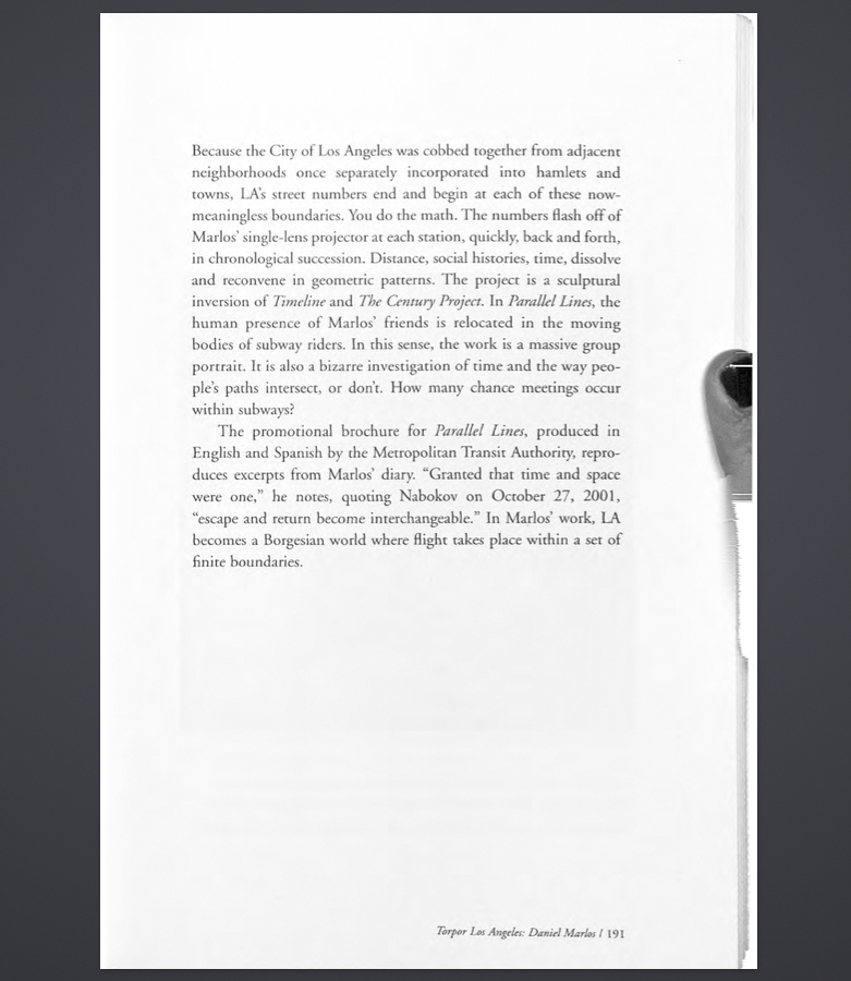 Encuentro este gesto interesante desde un aspecto fotográfico, ya que nos cuenta toda la historia. Nos dice que no hemos encontrado una manera en la que una máquina nos ayude a automatizar esta labor, que el libro pesa, que escanear es una molestia; y nos da una pequeña pista del creador de estas imágenes, mostrándonos esos autorretratos fragmentarios, literalmente indiciales (sólo vemos sus dedos), una serie de imágenes en las que como espectadores tratamos de expandir el cuadro fotográfico para tal vez poder reconstruir el brazo, el cuerpo, el rostro del operador(a) del scanner, el cuarto en donde está trabajando, de la ciudad, y del momento del día en el que está haciendo esto en lugar de estar disponiendo de su tiempo en una actividad más inmediatamente gratificante, como tomar un café o estar sentado en un parque.
